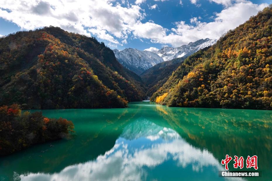 巍峨的雪山、絢爛的彩林、靜謐的湖泊……進入深秋,位于四川省綿陽市平武縣白馬藏族鄉(xiāng)的白馬湖,迎來了一年中最華麗的季節(jié)。雪山下是原始的植被,青綠的冷杉林、金黃的灌木叢,層層交疊,錯落有致。藍天白云、絢麗彩林、湖畔古寨、巍峨雪山在湖面投下倒影,與兩岸彩林交相輝映,共同構(gòu)成一幅迷人的深秋風景畫。