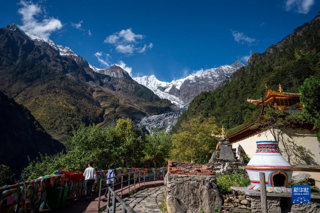 游客在明永冰川景區(qū)游玩(10月28日攝)。新華社記者 江文耀 攝