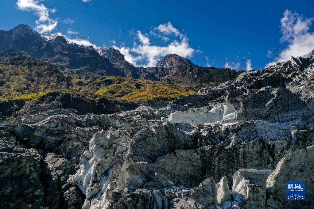 10月28日拍攝的明永冰川一景(無人機(jī)照片)。新華社記者 江文耀 攝
