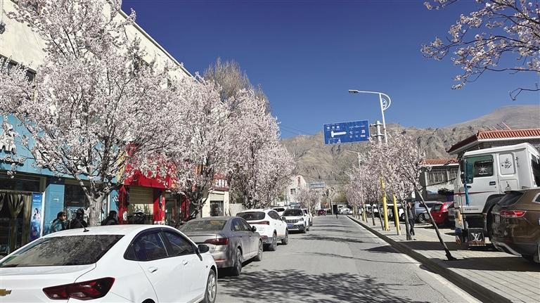暮春時節,隨著一樹樹繁花次第綻放,拉薩春的氣息也愈發濃烈。這個浪漫的季節也是游玩賞花的好時候。布達拉宮腳下的桃花粉白一片,次角林的古桃樹早已燦若云霞,與布達拉宮的桃花遙遙相對。高原慷慨的陽光將花瓣照得透明,春風拂過,閃爍微光的花瓣輕輕搖曳,無一不在訴說著春日的美好。