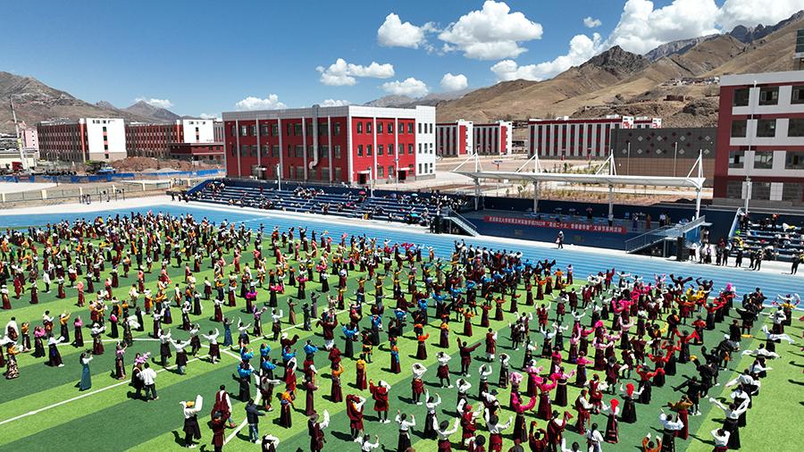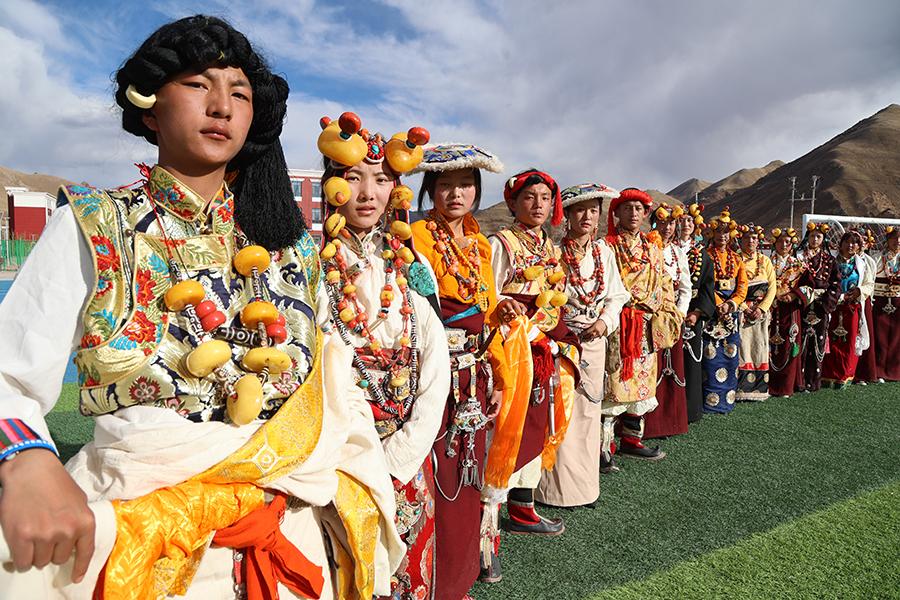 中國藏族網通訊 5月6日,青海師范大學附屬玉樹實驗學校舉行“五四運動103周年紀念大會暨‘華美青春耀百年’”文化展示活動,千余名師生身著華麗的民族服飾共同慶祝這一青年人的節日。