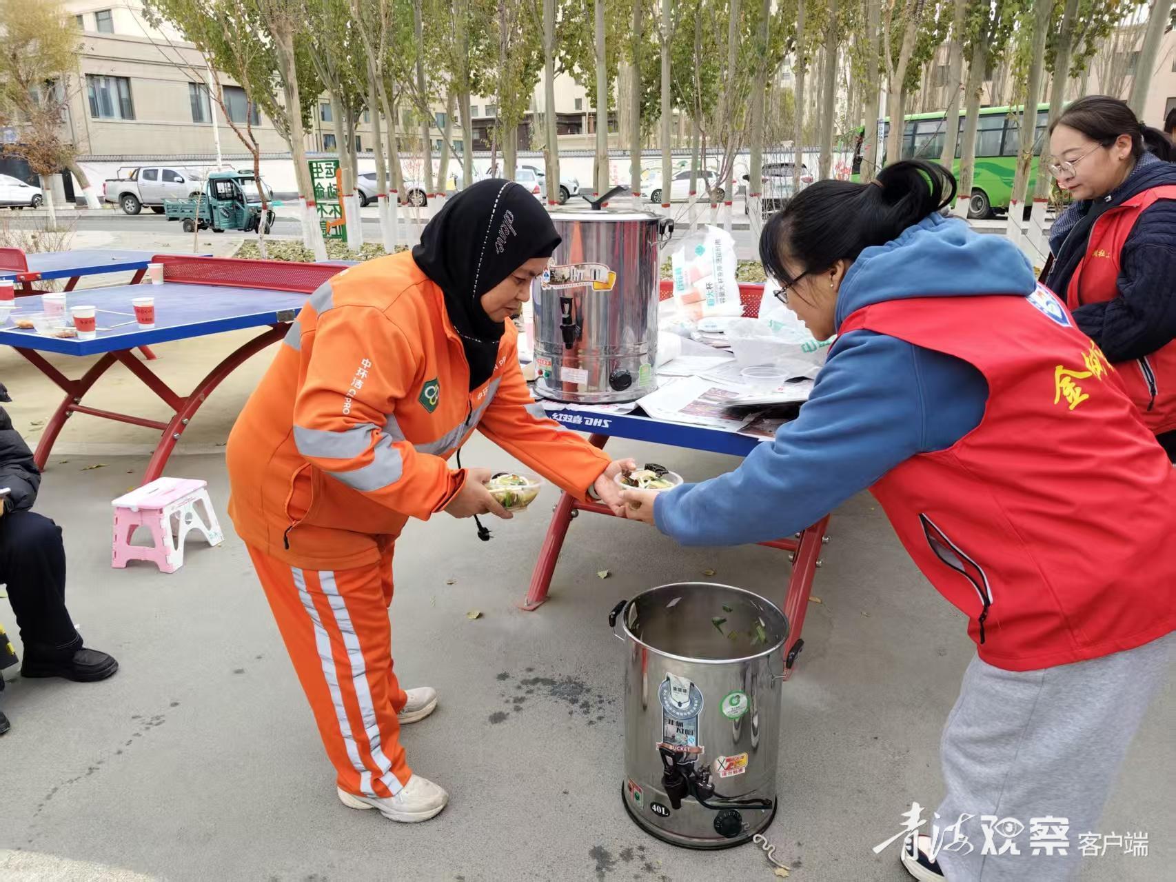 “鍋開了,奶茶香飄滿巷啦!”11月10日,海西蒙古族藏族自治州格爾木市楊樹巷社區(qū)小廣場上煙火升騰,三口大鐵鍋“咕嘟咕嘟”冒著熱氣。居民圍在鍋邊,有的攪動香濃的奶茶,有的剝著剛出鍋的茶葉蛋,歡聲笑語中,冬日的寒意被驅(qū)散得一干二凈。