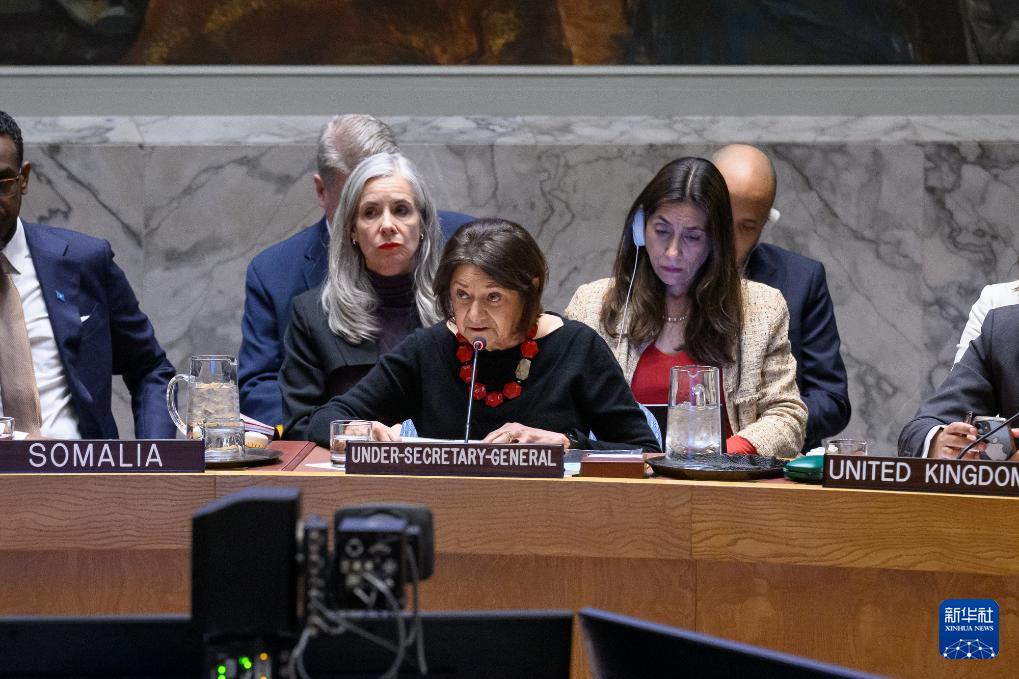 1月5日,在位于紐約的聯合國總部,聯合國副秘書長迪卡洛宣讀聯合國秘書長古特雷斯的講話。新華社發(聯合國供圖/洛伊·費利佩攝)