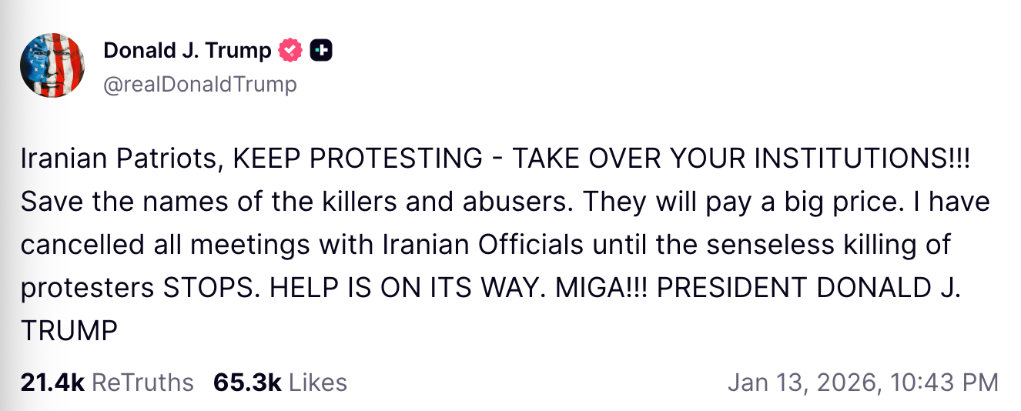此前,特朗普曾表示,伊朗方面已與美國(guó)政府官員接觸并提議進(jìn)行談判,“會(huì)議正在安排中”。同時(shí),美國(guó)正在考慮應(yīng)對(duì)伊朗局勢(shì)的一系列措施,包括軍事行動(dòng)等“一些非常強(qiáng)硬的選項(xiàng)”。但根據(jù)特朗普的最新表態(tài),這些會(huì)面均已取消。
