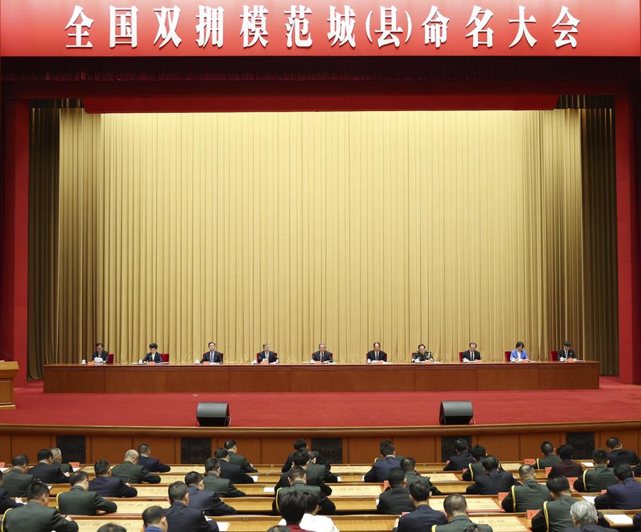 大會宣讀了關于命名全國雙擁模范城(縣)的決定,并為全國雙擁模范城(縣)代表頒獎。有關軍地代表作了發言。