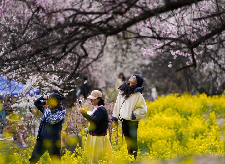 游客在西藏林芝市巴宜區嘎拉村欣賞桃花(2025年4月2日攝)。新華社記者 晉美多吉 攝