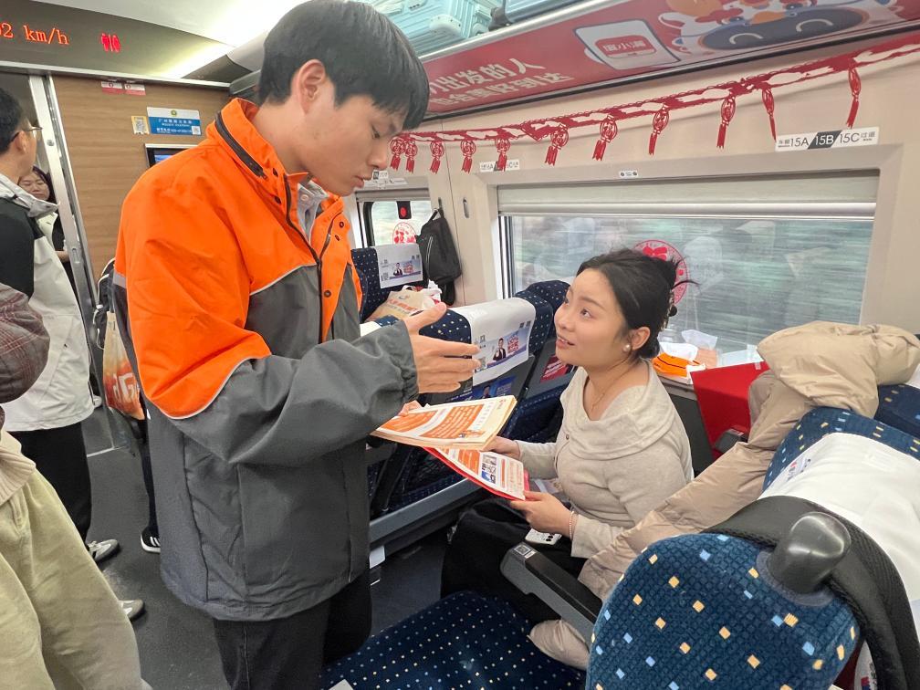返鄉(xiāng)專列上,一場別開生面的“移動春招會”同步展開。乘客現(xiàn)場掃描二維碼,可查閱到荊門近2.6萬個招聘崗位信息。“老鄉(xiāng)們,要是大家年后想在家門口就業(yè)創(chuàng)業(yè),可以隨時聯(lián)系我們。”荊門市人社部門工作人員鄭文杰的一席話,溫暖又親切。
