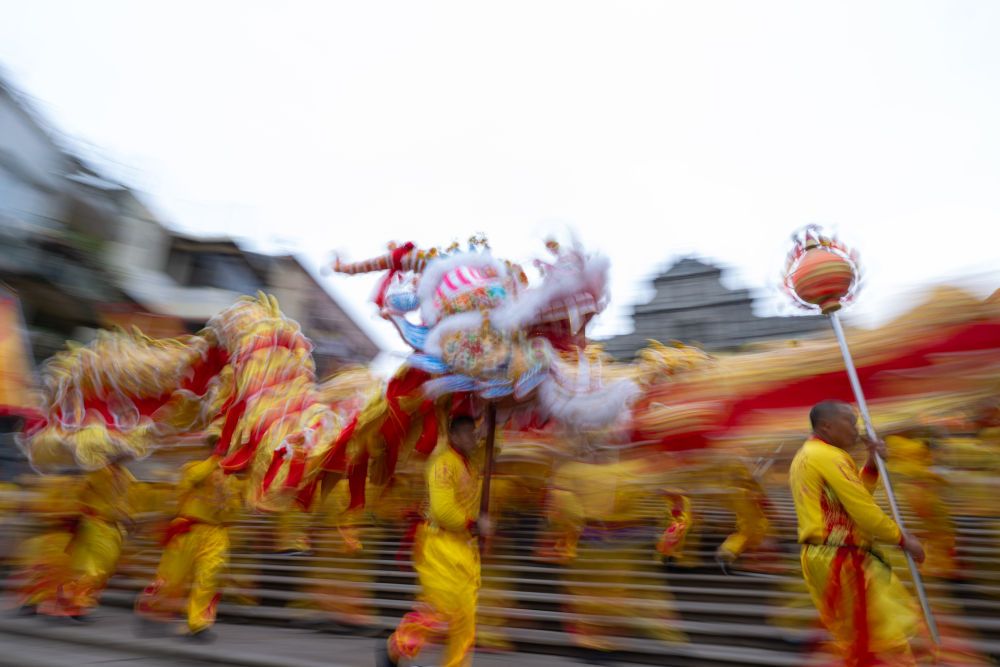 廣東中山游客王世杰一早便在大三巴牌坊前等著金龍。“粵澳文化相近相通,都講粵語、吃粵菜,都喜歡舞龍舞獅。”他說,舞龍醒獅同臺獻瑞的傳統,把節日喜慶氛圍“推向更高”。