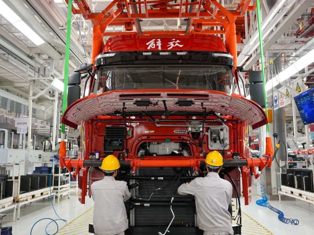 ??2026年1月4日,工人在位于吉林省長春市的一汽解放J7整車智能工廠裝配車輛。新華社記者 張楠 攝