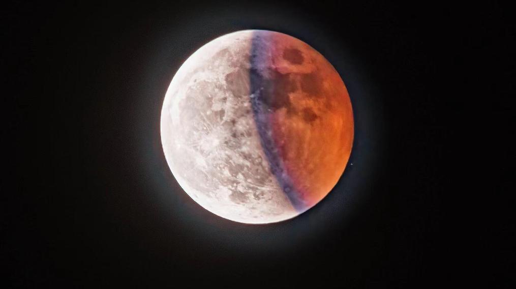 值得一提的是,在食既前和生光后,用望遠鏡觀察,還有可能發現月亮表面出現一條淺藍色或綠松石色的色帶,這是由穿過地球高層大氣的陽光產生的,是月食期間難得一見的“藍帶”景觀。使用專業相機拍攝,也能捕捉到這個時段的神奇景象。