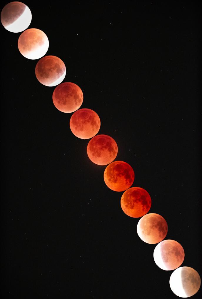 本次月全食將從3日傍晚開始,整個過程主要分為半影食始、初虧、食既、食甚、生光、復圓、半影食終七個階段。其中全食階段,也就是民間俗稱的“紅月亮”持續約1小時。