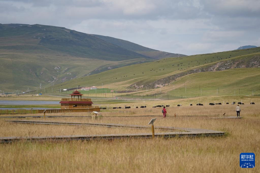 9月4日,游客在尕海濕地游玩。新華社記者 胥冰潔 攝