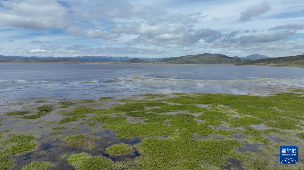 這是在尕海濕地拍攝的蒼鷺(9月4日攝,無人機照片)。新華社發(拉瑪才旦 攝)