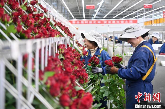 甘肅臨夏回族自治州臨夏市23日寒風正勁。步入該市枹罕鎮青寺村的百益億農國際鮮花港內,暖意正濃。引自荷蘭的多個品種玫瑰花競相開放,它們即將被打包發往北京、上海、廣州,以及東南亞等地。