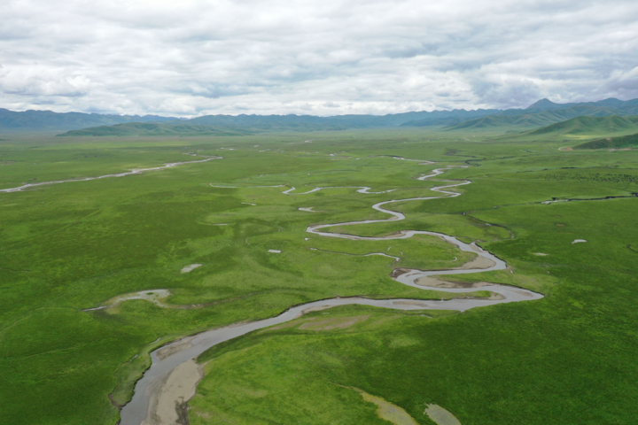 瑪曲縣阿萬倉濕地(無人機照片)。新華社記者 文靜 攝