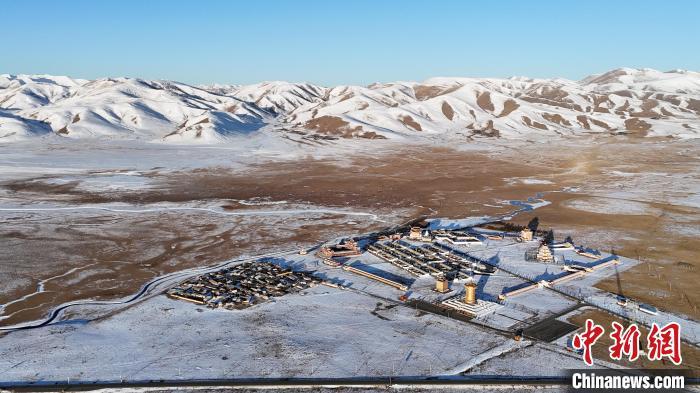 圖為雪后的瑪曲縣阿萬倉鎮。(無人機照片)中新社記者 九美旦增 攝