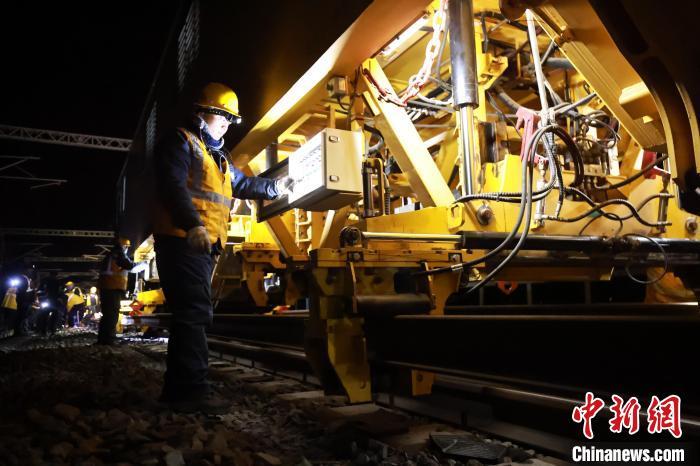 圖為職工緊盯換軌“貪吃蛇”施工作業狀態。丁樹明 攝