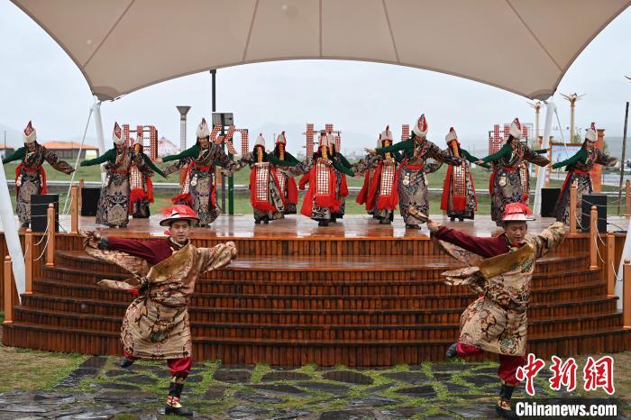 6月9日,甘肅甘南藏族自治州夏河縣,當(dāng)?shù)剡M(jìn)行歌舞表演歡迎參加活動(dòng)的嘉賓。中新社記者 九美旦增 攝