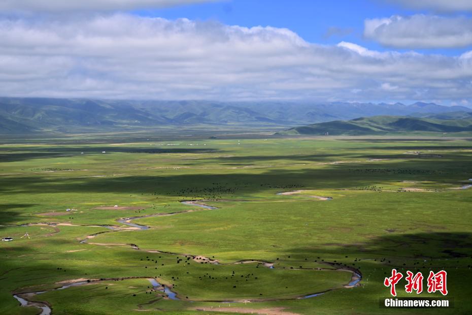 7月12日,瑪曲縣阿萬倉濕地風景如畫。中新社記者 九美旦增 攝