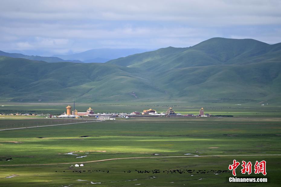 7月12日,航拍視角下的瑪曲縣阿萬倉鎮。(無人機照片)中新社記者 九美旦增 攝