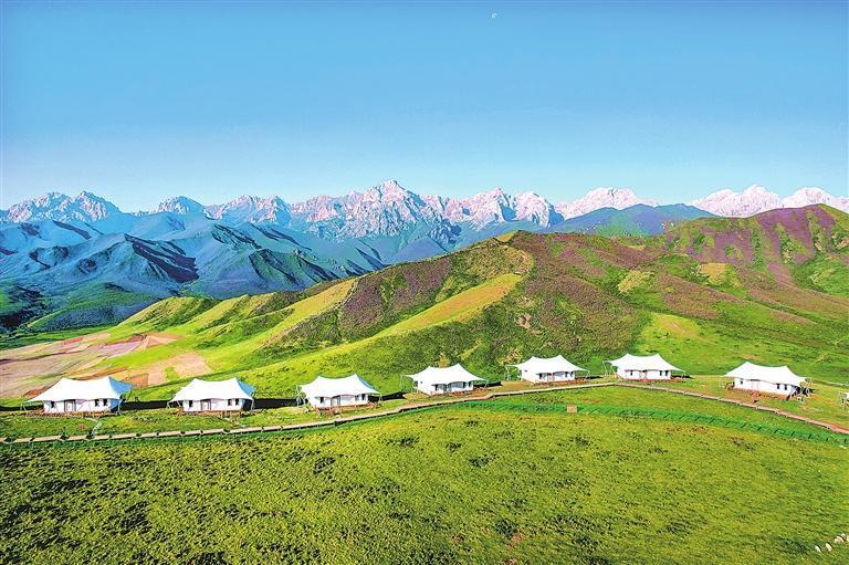 初秋的馬牙雪山腳下,百余頂白色帳篷如珍珠般散落在抓喜秀龍草原上,這里是天祝縣文旅新地標——阿尼嘎卓帳篷營地,它不僅為游客提供了沉浸式體驗藏鄉風情的絕佳去處,而且成為撬動文旅產業升級、促進農牧民增收的支點。