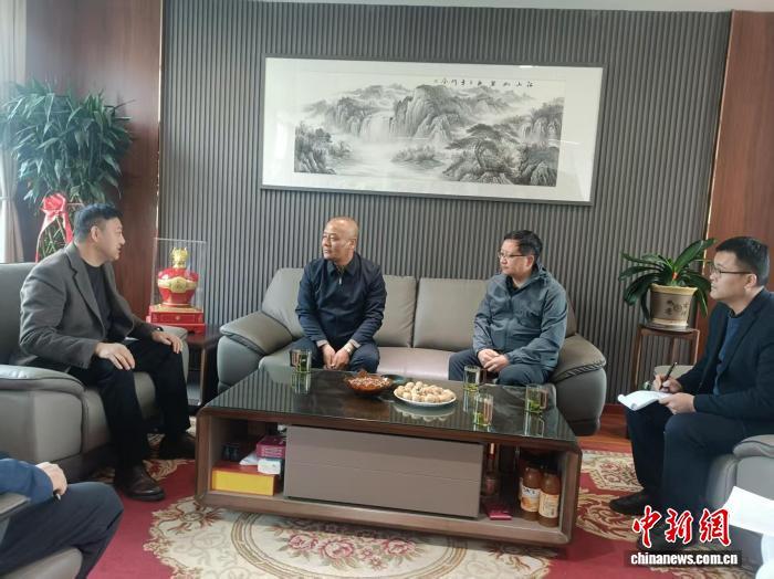 圖為楊海強(左二)為劉小成(左一)解答企業遇到的問題。(資料圖)受訪者供圖
