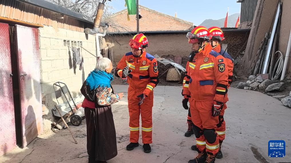1月26日,甘肅省消防救援總隊救援人員在甘南州迭部縣向居民了解地震受損情況。新華社發(甘肅省消防救援總隊供圖)