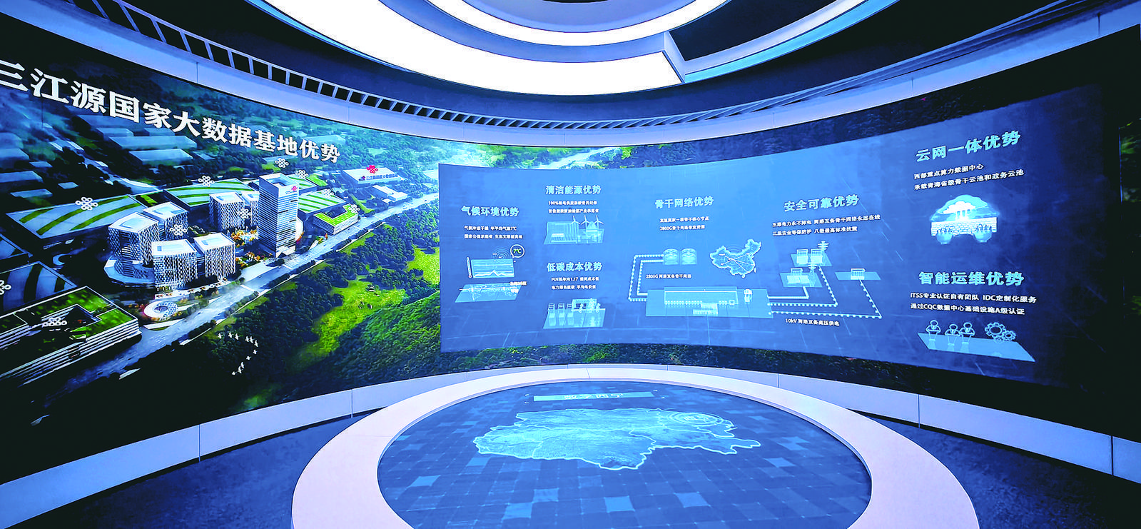 中國(guó)聯(lián)通(青海)三江源國(guó)家大數(shù)據(jù)基地展廳。本報(bào)記者 張慧慧 攝