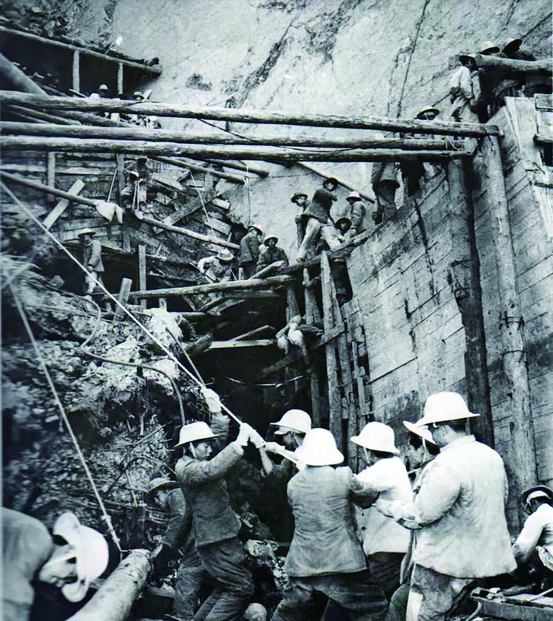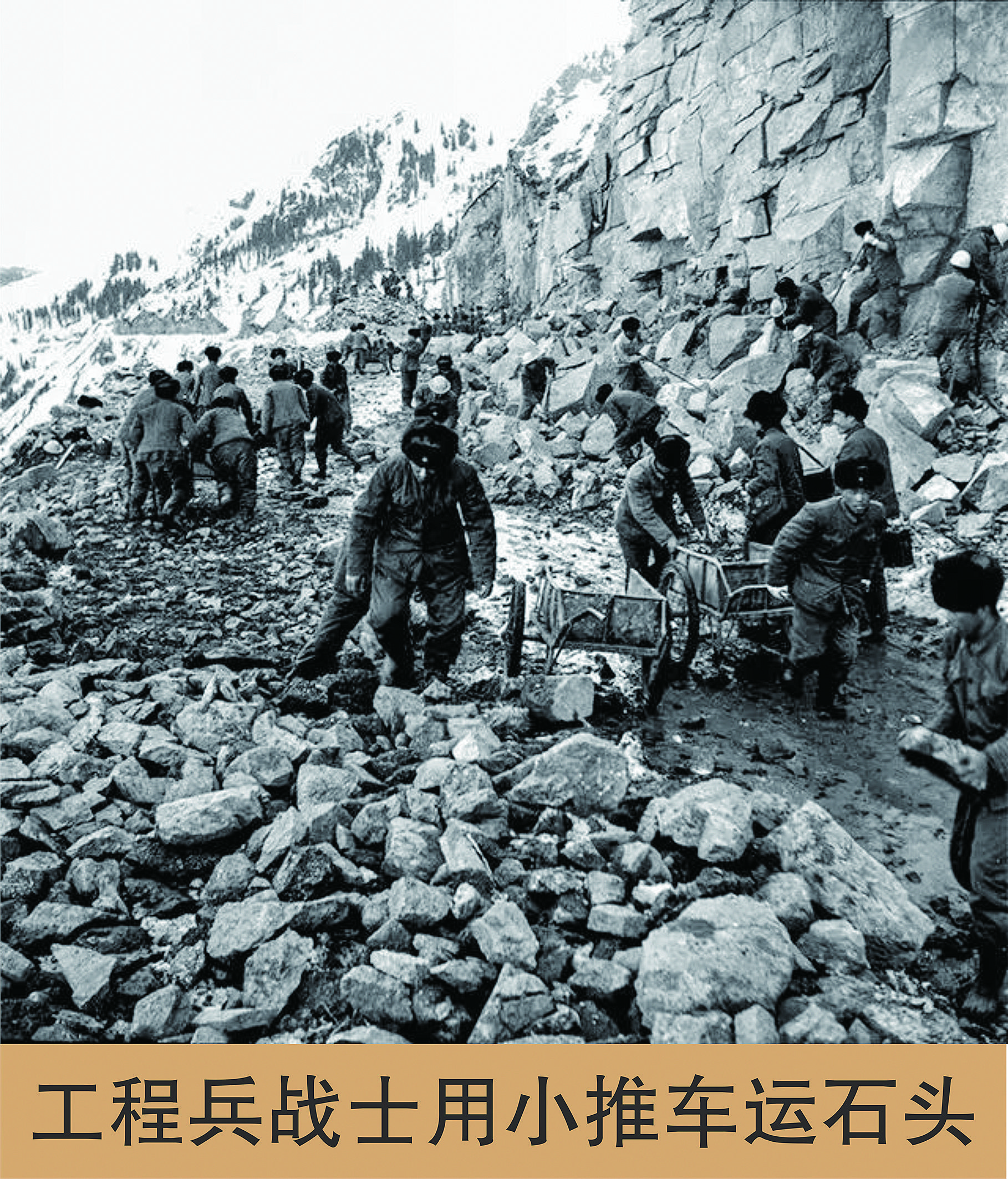1961年4月,經中央軍委批準,特種兵工程指揮部抽調部分人員組建工程兵建筑第54師(轄101團等7個團),負責統一組織管理西北地區所有核科研基地工程建設。其中,101團作為先頭部隊在1959年底陸續進入金銀灘。他們的主要任務是修路、坑道施工及基地建設其他任務;103團于1963年8月從甘肅玉門開赴海晏縣,擔負同寶山炮兵陣地、廠區東線道路以及地下坑道工程等建設任務。