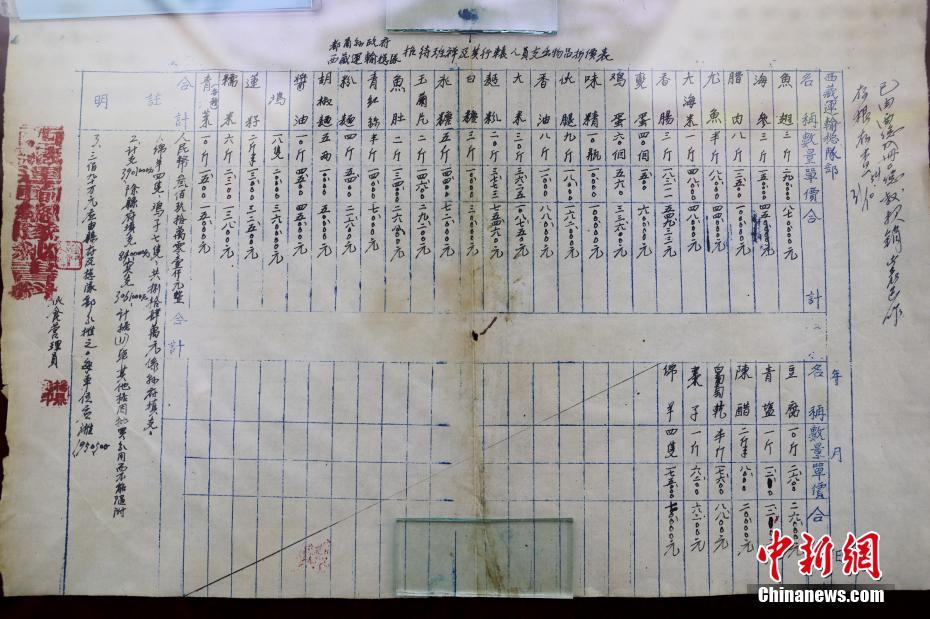 12月6日,在位于青海省海西蒙古族藏族自治州烏蘭縣茶卡鎮(zhèn)以南約18公里處的莫河駝場,陳列館擺放展覽的運輸隊物資清單。