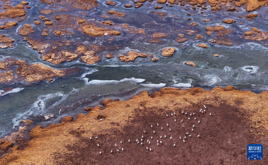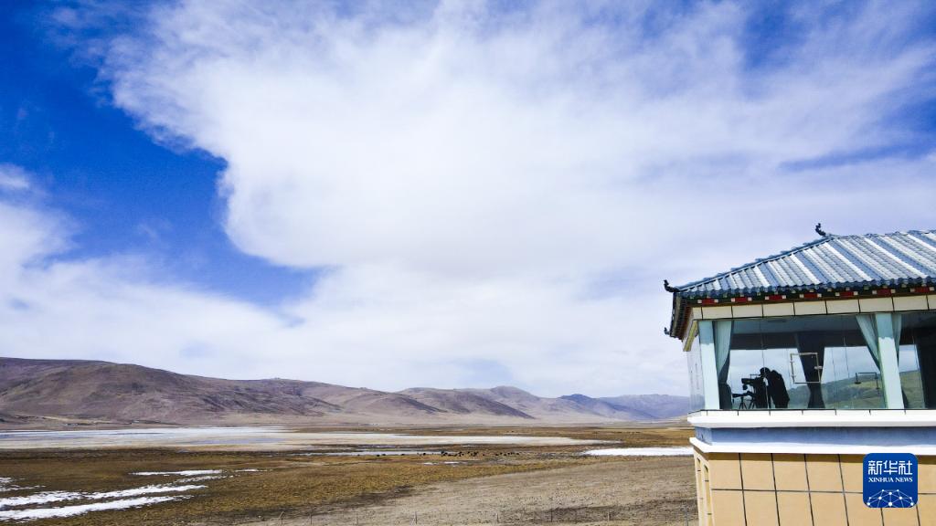 4月8日,生態(tài)管護員在青海隆寶國家級自然保護區(qū)管理站觀測鳥類(無人機照片)。新華社記者 齊芷玥 攝