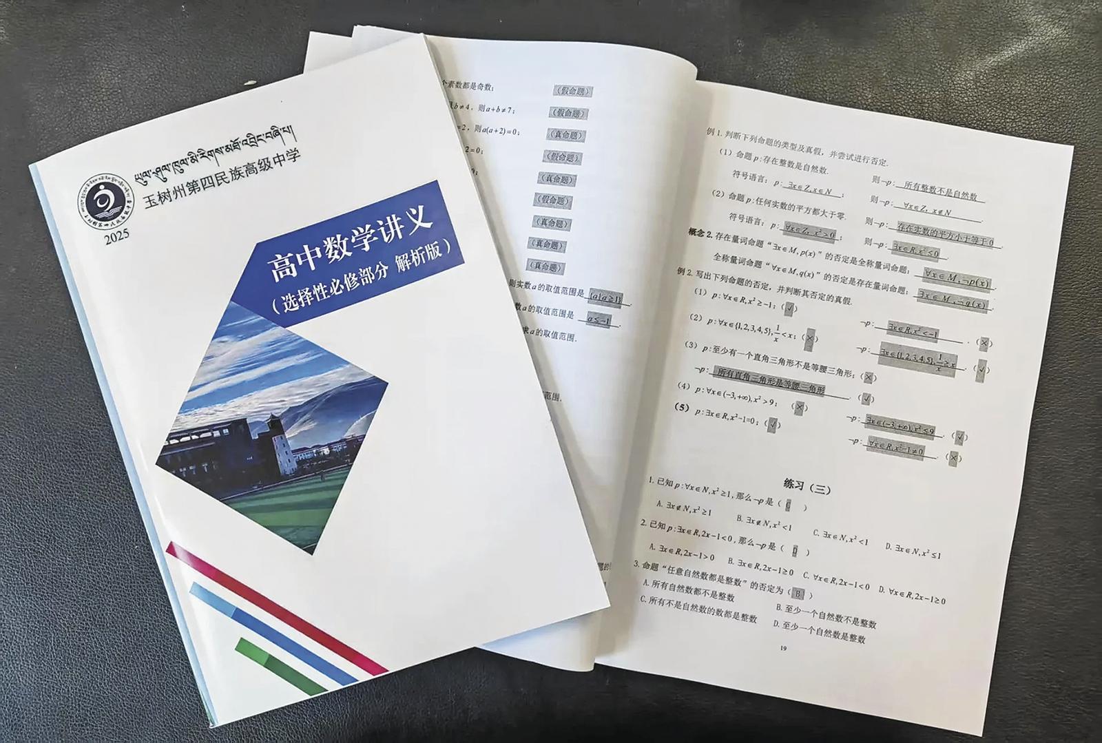 6月16日,在玉樹藏族自治州第四民族高級中學高二7班的教室內,孩子們每個人手里拿著一本《高中數學講義(必修部分)解析版》認真翻看。