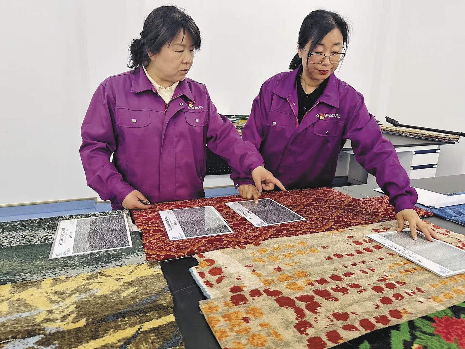 在復合工藝車間,2022年引進的智能紗架系統正高效運轉。單一顏色尾紗消耗量從30至40千克降至10至15千克,尾紗節約量達50%至60%。“2024年節約尾紗100多噸,相當于5萬平方米地毯的用料。”高文蘭算了一筆精細賬。這種技術革新不僅降低成本,更讓小單定制成為可能,如今企業每月承接的百平方米以下定制單占比也在逐年上升。