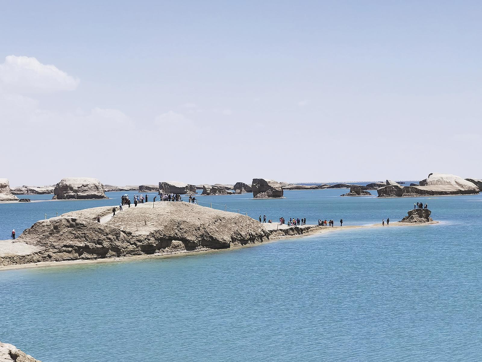 水上雅丹,游客拍照打卡。記者 李娜 魏雅琪 攝