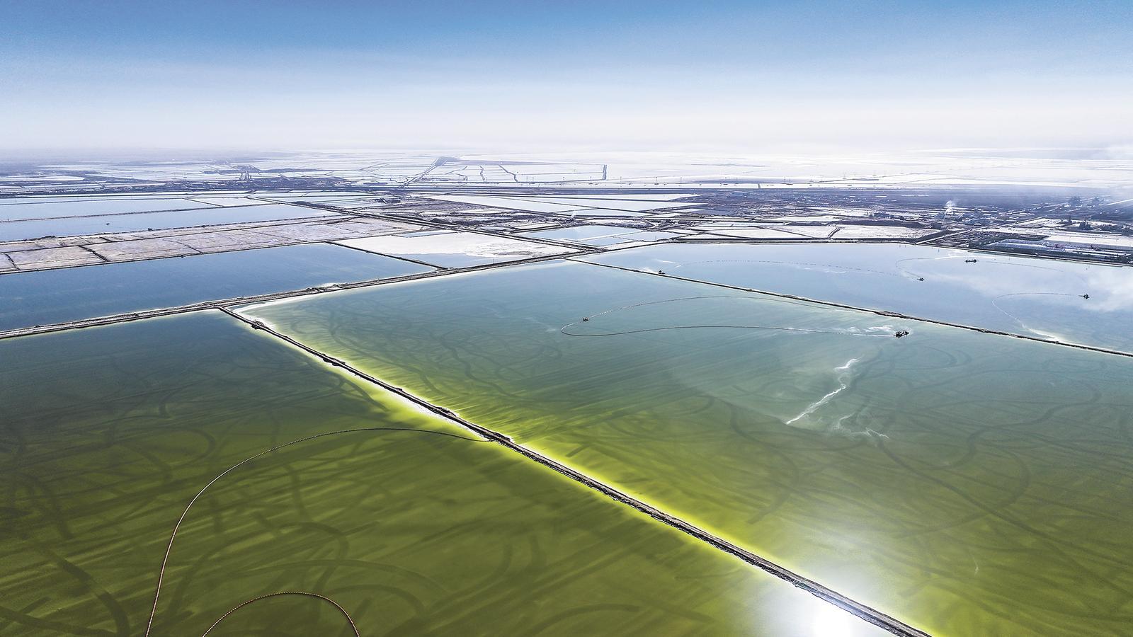 察爾汗鹽湖的鹽田。記者 張鵬 攝