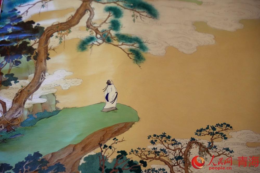 “熱貢藝術的傳承史,本身就是一部多民族文化交融史。”龍樹畫苑負責人完德尖措的話音未落,大家的目光已被畫布上的絢麗色彩吸引。