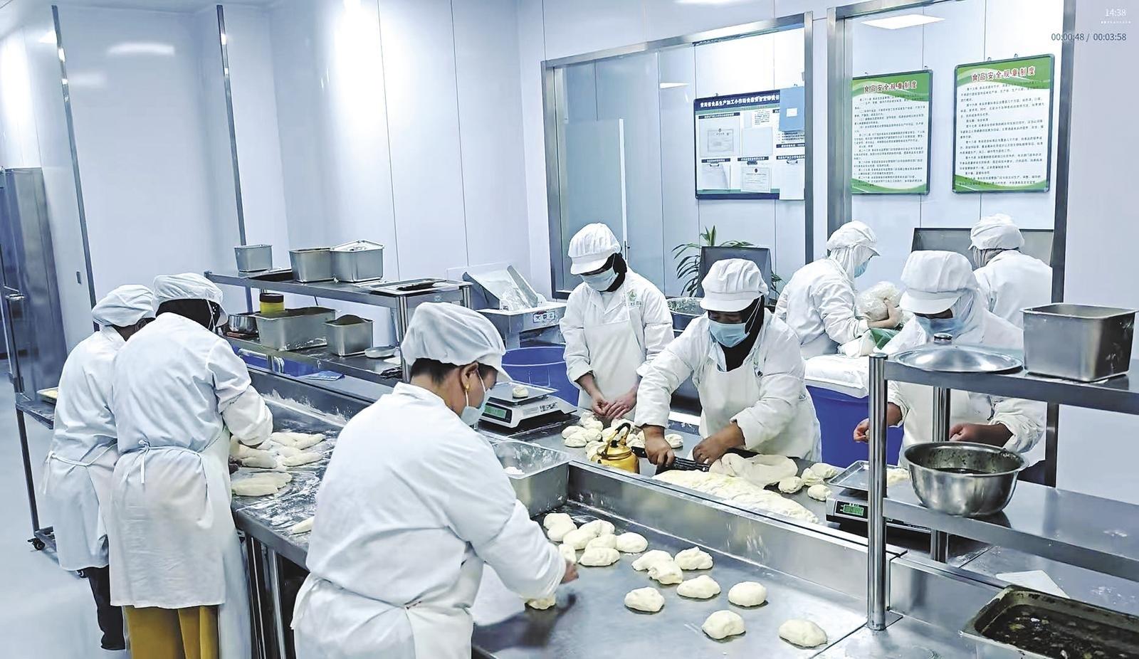 通過“傳統工藝+現代營銷”的方式聯農帶農促增收,青海海亞食品有限公司優先吸納周邊留守婦女、脫貧群眾及家庭困難勞動力就業,涵蓋和面、烤制、打包、直播等多個工種,幫助大家“顧家掙錢兩不誤”。