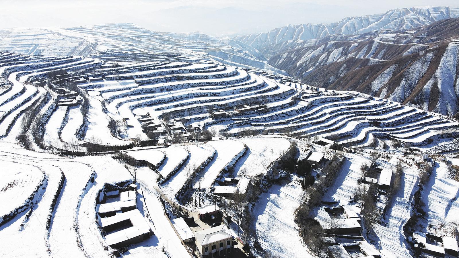 雪后的中嶺鄉銀裝素裹,白雪覆蓋的田野里孕育著無限生機(無人機拍攝)。記者 祁萬強 攝