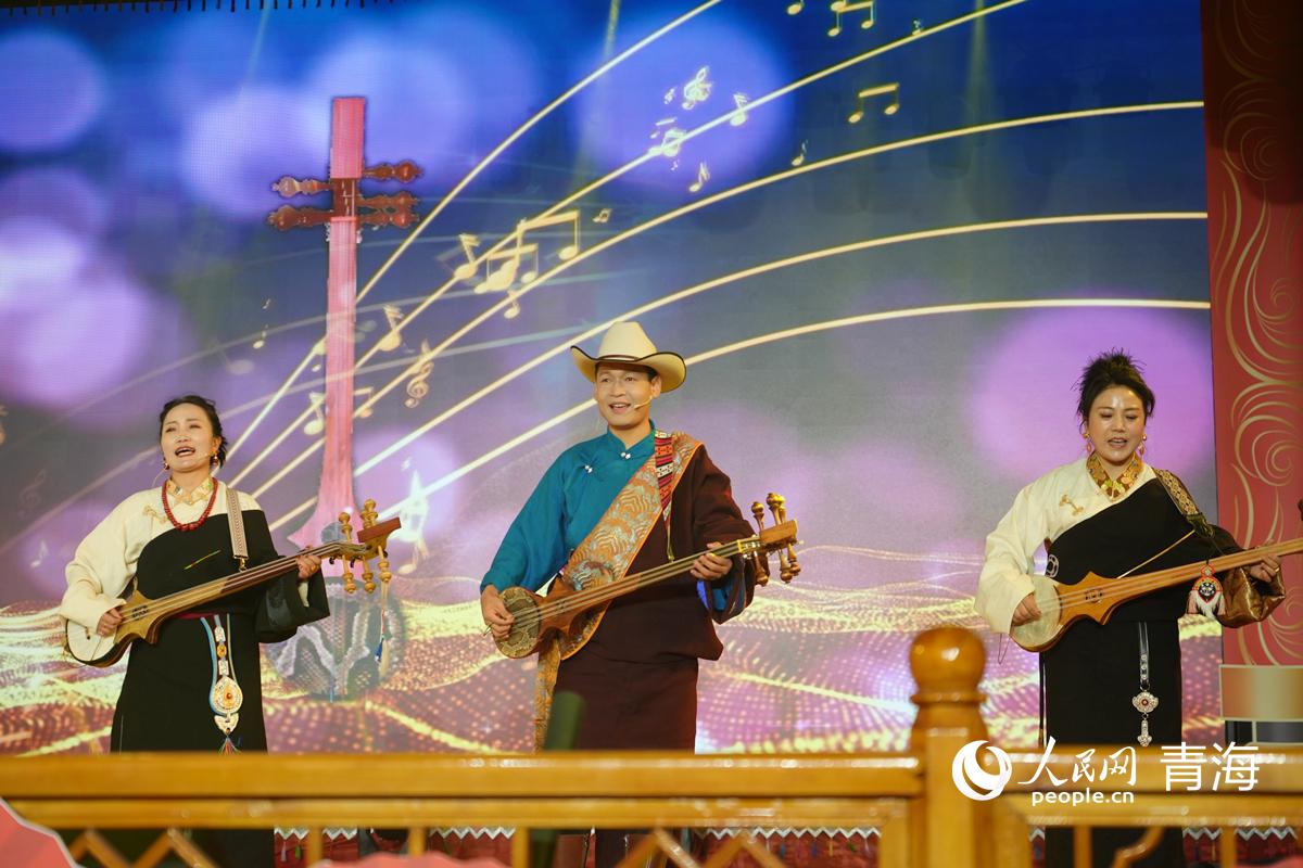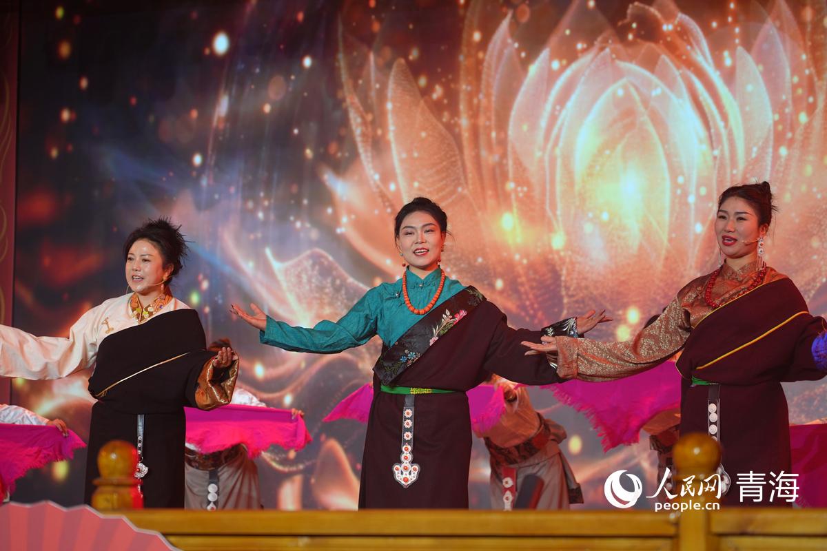 人民網尖扎2月11日電 扎木念彈唱悠揚悅耳,鍋莊舞蹈歡快喜慶……2月9日,青海省黃南藏族自治州尖扎縣“神駒踏雪迎春來?清清黃河譜華章”新春聯歡會舉行,聯歡會涵蓋舞蹈、歌曲、彈唱、服飾走秀等21個精品節目,藏、漢、回等民族節目交相輝映,原創作品亮點突出,扎木念的悠揚與鍋莊的熱烈,交織出的是這片土地的多彩與和諧;服飾走秀的華美與歌曲彈唱的深情,詮釋著各民族文化的互鑒共榮。