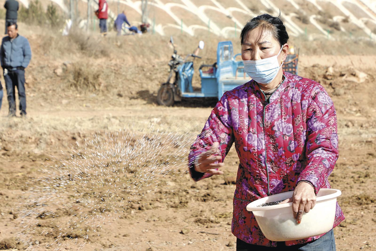 中國藏族網通訊 2月11日,在海東市民和回族土族自治縣官亭鎮趙木川村,農戶正趁著晴好天氣,將精選的種子播撒進肥沃的土壤。隨著拖拉機的轟鳴和播種機鐵犁的劃動,一顆顆飽滿的小麥種子被整齊有序地播撒在沃土之中,拉開了民和新一年春耕生產的序幕。