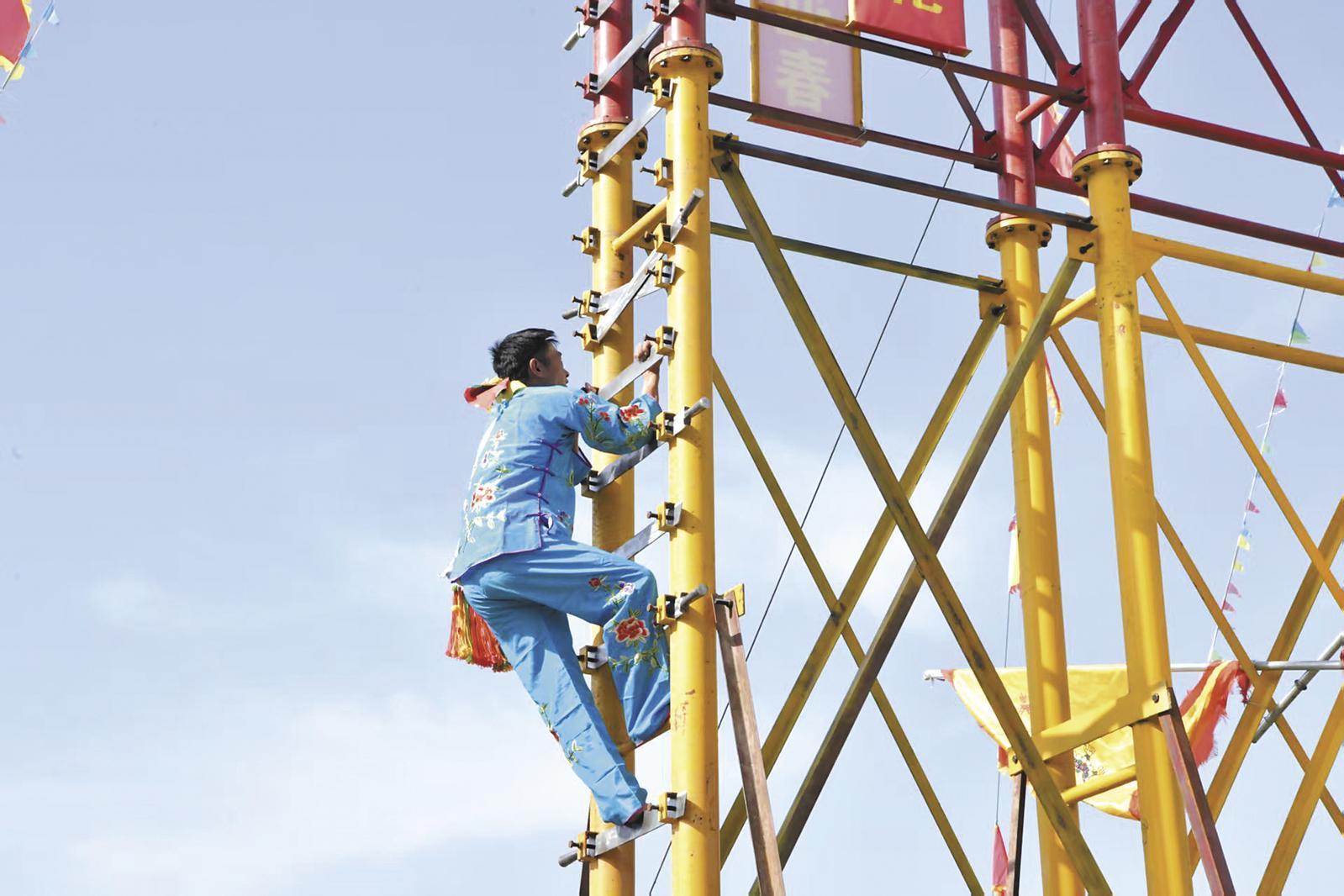 首頁 / 新聞 / 涉藏新聞 / 青海 / 正文 非遺絕技賀新春 傳統文化煥發新活力 來源 : 青海日報 發布時間 : 2026-03-02 字體 :小 中 大 記者 陳晨 攝2月27日,海東市民和回族土族自治縣舉辦省級非物質文化遺產代表性項目《目蓮寶卷》展演,進一步豐富群眾的新春精神文化生活。《目蓮寶卷》是流傳于民和縣西溝鄉麻地溝村的古戲劇腳本,被譽為“中國古老戲劇的活化石”。其中,“上刀山”是《目蓮寶卷》劇目中最具震撼力的環節,俗稱“刀山會”。展演現場,高五丈八尺、兩側呈梯形結構、共縛有120把鋼刀的“刀山”,好似一道“天梯”,藝人赤腳攀上刀梯,從容完成一系列連貫動作,將現場氣氛一次次推向高潮。 編輯 : 加毛吉