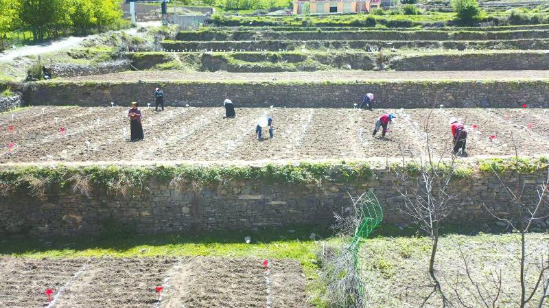 科研人員與當(dāng)?shù)卮迕裨谙姆被貏谧鳎ㄙY料圖片)。馬爾康市委宣傳部供圖