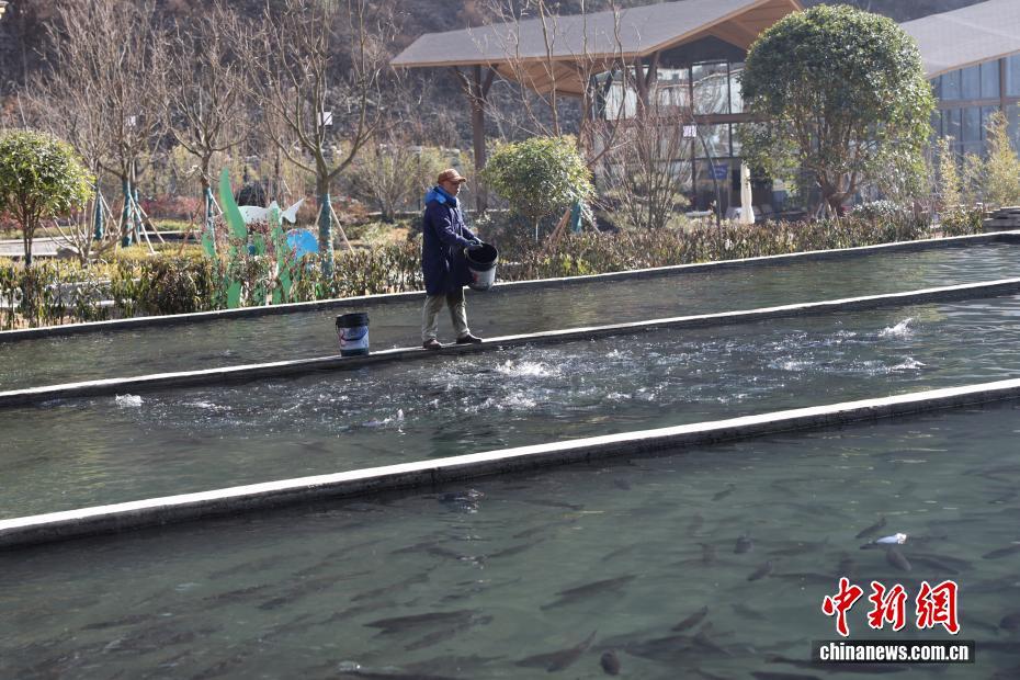 12月26日,位于四川省阿壩州理縣薛城鎮甲米村的高原特色冷水魚養殖基地內,工作人員進行喂料作業。該基地處于海拔超2000米的孟屯河畔,水源來自高海拔地區的雪山融水,年均水溫9-10℃,目前養殖有鱒魚、黃河魚、雅魚等10萬余尾。基地將優良生態資源與現代養殖技術結合,通過“魚經濟”發展,豐富業態、增加就業、農旅融合壯大了該村集體經濟,同時拓寬了村民增收致富渠道。
