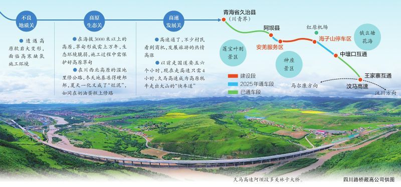 2025年12月29日24時,青海久治至四川馬爾康高速公路(簡稱久馬高速)再通87.5公里,結束阿壩州紅原縣不通高速的歷史,從成都駕車前往紅原大草原的時間縮短至4小時。