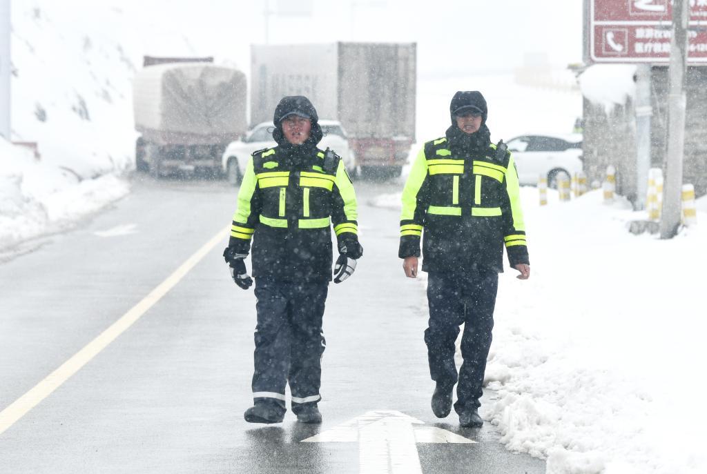 包永鵬(左)與王洛讓(右)在堵點執勤。(甘孜公安供圖)
