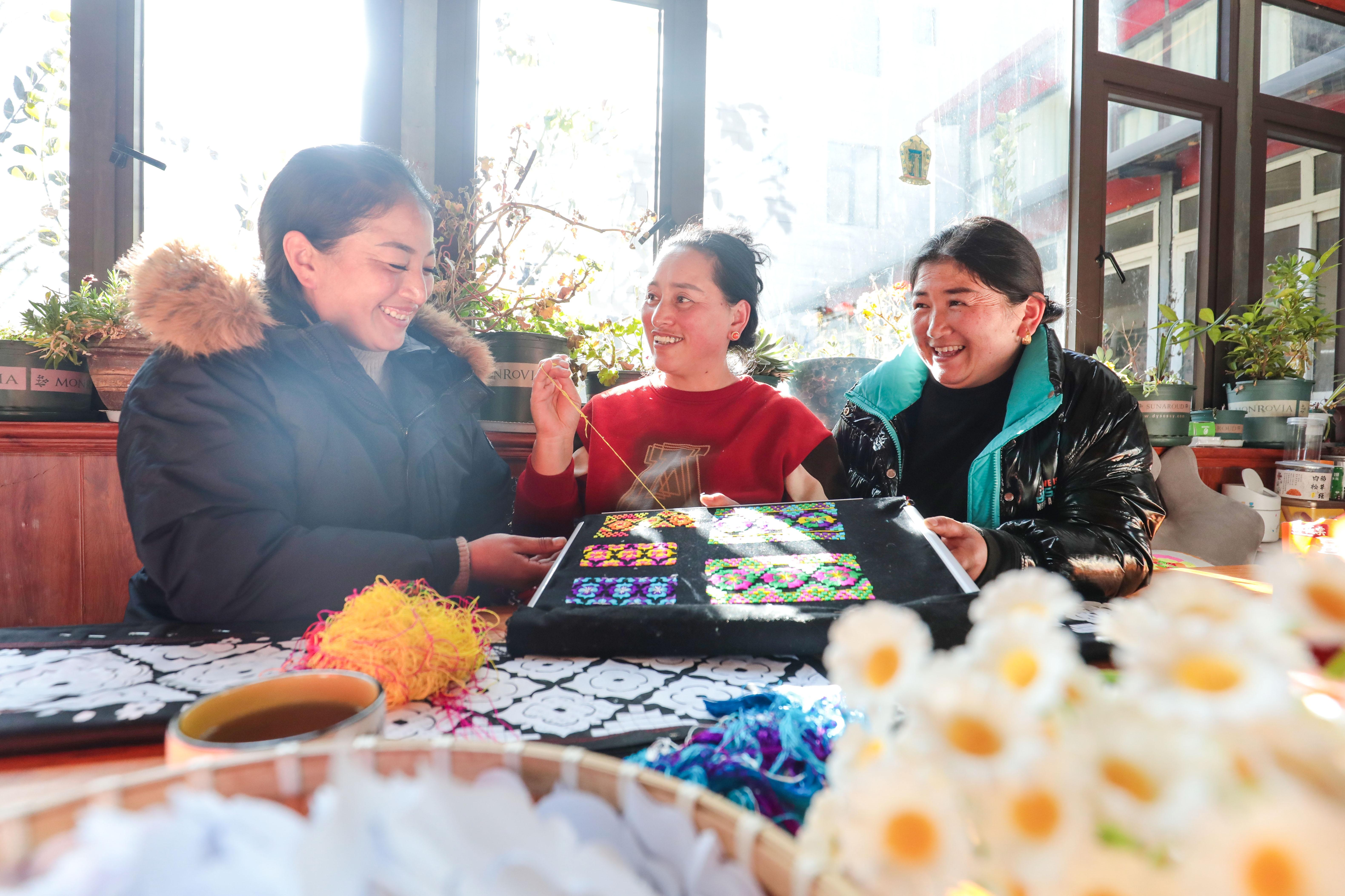 “合作社出品的藏族傳統繡品已在全國打響了知名度,冰箱貼、靠枕、手鏈等小工藝品也深受游客喜愛。合作社成立以來已累計開展各類培訓46期,培訓3600余人次。”仁珍初透露,今年合作社已實現銷售收入60余萬元,有些繡娘還成立了自己的合作社,惠及近百個家庭,并吸引了不少游客和高校學生前來體驗藏織繡技藝。