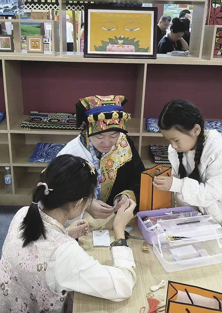 陳娟指導孩子們體驗藏繡針法