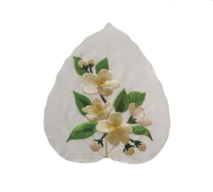 梨葉上的阿壩非遺繡品