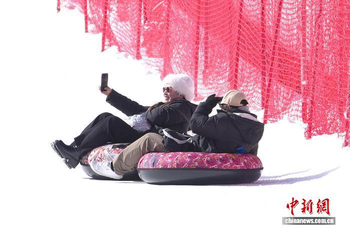 1月5日,四川阿壩畢棚溝,游客參與冰雪娛樂項目。中新社記者 安源 攝