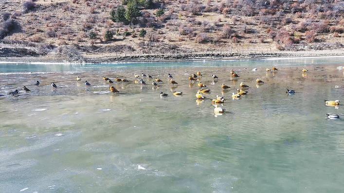 首頁 / 新聞 / 涉藏新聞 / 四川 / 正文 赤麻鴨、綠頭鴨在冰封的湖面上休憩 來源 : 阿壩日報 作者 : 張成亮 馬朝煒 發布時間 : 2026-01-23 字體 :小 中 大 1月21日,赤麻鴨、綠頭鴨在冰封的湖面上休憩。冬季,成群的赤麻鴨、綠頭鴨等齊聚松潘縣鴛鴦橋電站庫區,于冰封的湖面上越冬。它們或靜臥冰面,或振翅翱翔于庫區上空,勾勒出一幅靈動和諧的生態畫卷,為當地冬日增添了一道亮麗的風景線。 編輯 : 拉專措